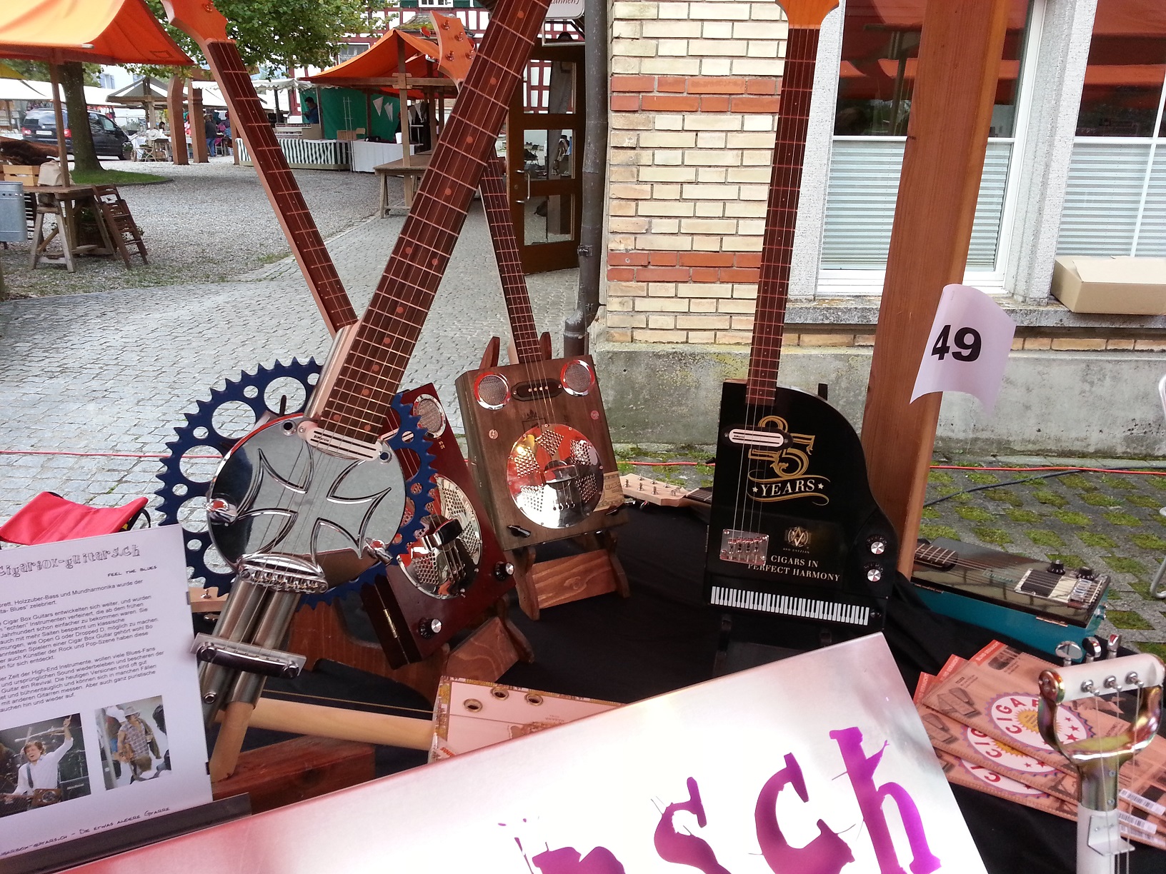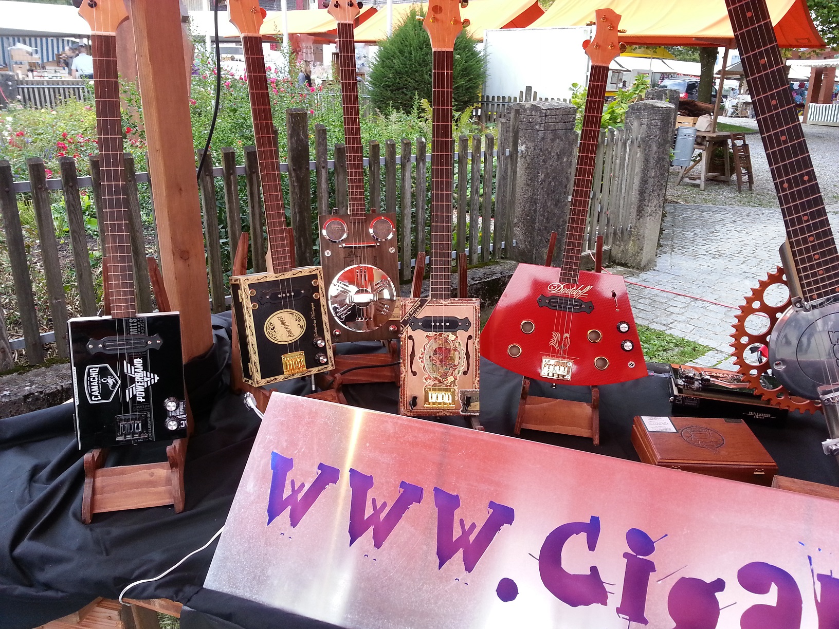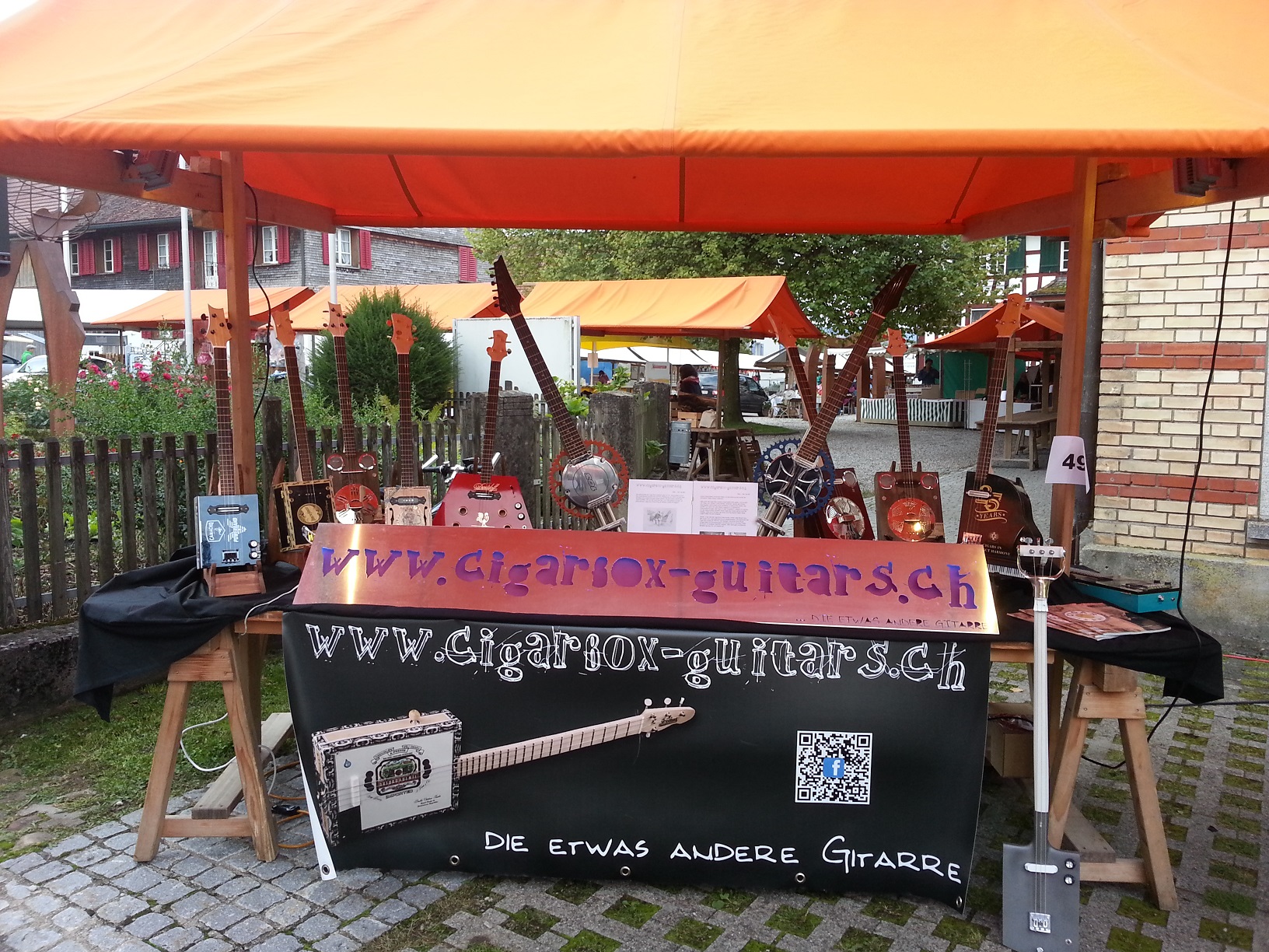 Während sich die Frauen eher vor den Ständen mit den fantasievoll gestalteten Dekorationsartikeln tummelten, zog die alte Obstmühle auf dem Hof von Familie Frieden vor allem die Männer an. Sie bestaunten das Gerät, das aus frischen Äpfeln ebenso frischen Süssmost produzierte. «Der Markt ist eine super Sache. Dann ist wieder einmal etwas los in unserem kleinen Dorf», lobte Ruedi Frieden den Anlass, bei dem es auch Ausgefallenes zu entdecken gab. Der Kradolfer René Kubli etwa stellt aus alten Zigarrenkistchen sogenannte «Cigarbox-Guitars» her. «Das grösste Geschäft erwarte ich hier nicht. Die Marktbesucher zeigen sich aber interessiert und haben Freude an den Gitarren», erklärte er. Freude zeigten auch die Frauen, die für einmal nicht kochen mussten, sondern am Markt eine Köstlichkeit von einem der Stände oder der Festwirtschaft geniessen konnten.